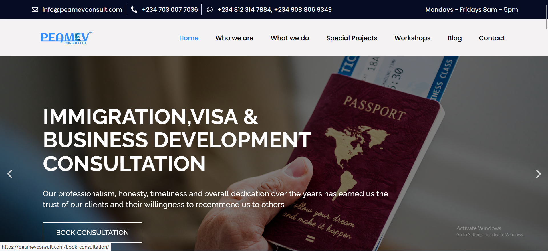 Peamev Consult approached Elug Technologies with the goal of creating a modern, user-friendly website that would:
